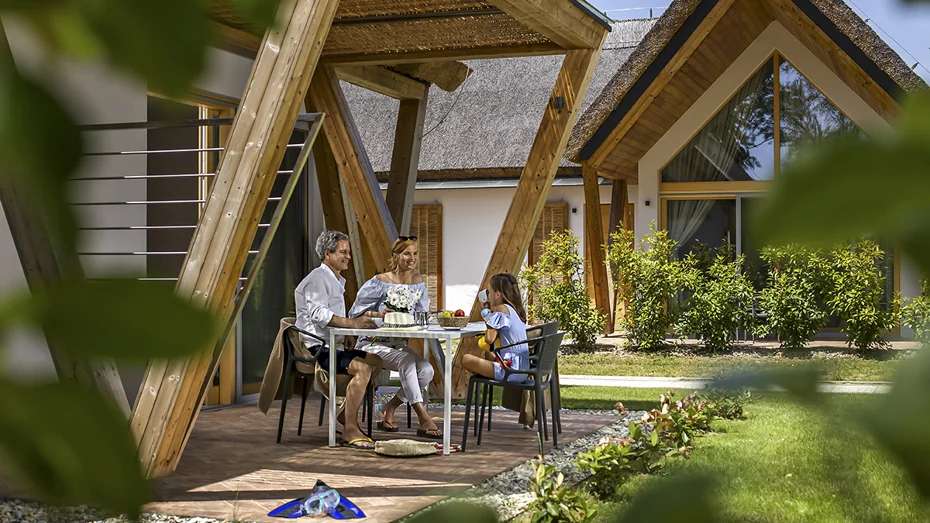 Apartmány se nacházejí 250 m od tamních termálních lázní, bohaté na termální prameny s tzv. "černou vodou". Apartmánový komplex tvoří domky, jejichž architektura zachovává prvky typické vesnice prekmurské oblasti.