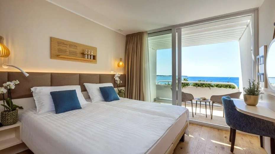Kompletně zrekonstruovaný hotel disponuje pokoji a apartmány s balkony a výhledem na moře nebo lagunu.